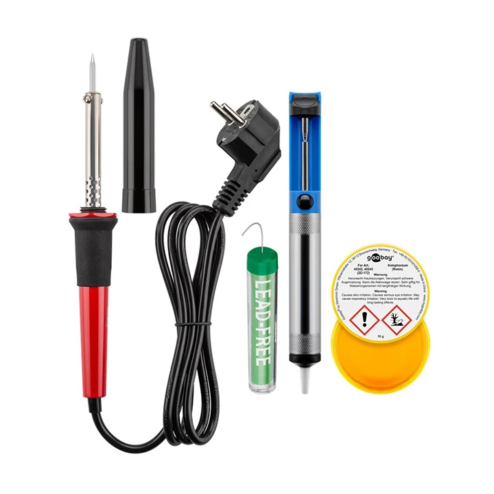 | - 1 x lemilica 30W, 1 x vakuum pumpa za odlemljivanje, 1 x lem bez olova, 1 x mast za lemljenje (kolofonijum) |