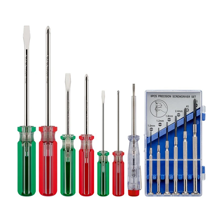 | - Šrafovi: 6 x odvijača (pljosnati i krstasti 1 x 75mm, 1 x 75mm, 1 x 125mm), 1 x ispitivač napona, 1 x set odvijača za preciznu mehaniku od 6 delova |